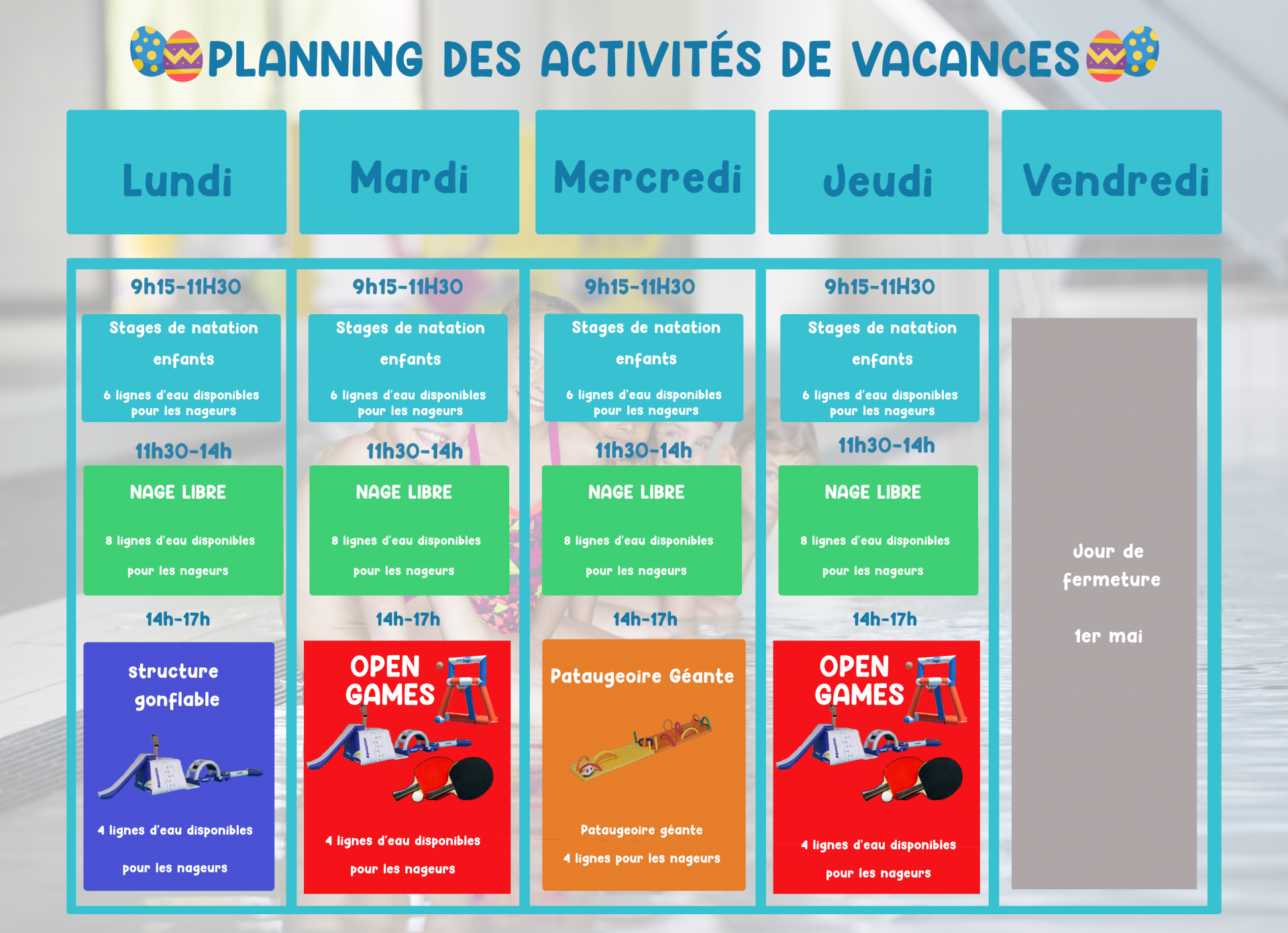 Venez choisir le créneau qui convient à votre enfant pour participer à nos stages sportifs !